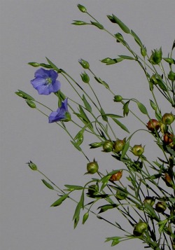 AKA: Flax Plant or tree. Department of Horticulture and Crop Science Ohio State University You can also eat Flax in the seed form. But for you to get full benefit the seeds need to be ground into a powder. The shell of the seed is way to hard to digest. Undigested flax seeds just pass right through excreted via the rectum. As I have already introduced you to one of my 5 kitty friends I won't reiterate how "Baxter" became a member of our household. One day about a month ago I was cleaning his ears. My daughter passed by and asked me, "What's on Baxter's belly?" I immediately looked, a rash covered 1/2 of his abdomen. The next morning we visited the Vet, he concluded, Baxter has a strange named fungus growing on his stomach!! We received a tube of topical cream and told to apply it twice daily for ten days. The vet looked at me with a serious scowl on his face. He said, "If the rash isn't gone in 10 days bring him back in. this type of rash can be a symptom of tumors." Fear bolted through me, I replied, "malignant tumor?" "Yes," he droned. Well, to cut to the chase, for the first five days we didn't see much healing. Around about the 7th days, I told my daughter I would begin a regiment of flax seed oil. I had learned from reading The Gerson Therapy written by Charlotte Gerson that flaxseed oil had been used to eradicate tumors in humans. Why not try the Miracle Oil on my kit, I wasn't sure how much to give him so I proportioned by body weight and give him 0.3 cc daily. After giving him the flax oil his rash diminished more quickly and his hair grew back quite fast. I have no way to quantify the results, all I know is my special kitty got his strength back and began eating normally again. 3 of my cats are now receiving flax seed oil. You should see how gorgeous their fur coats are.....WOW!!